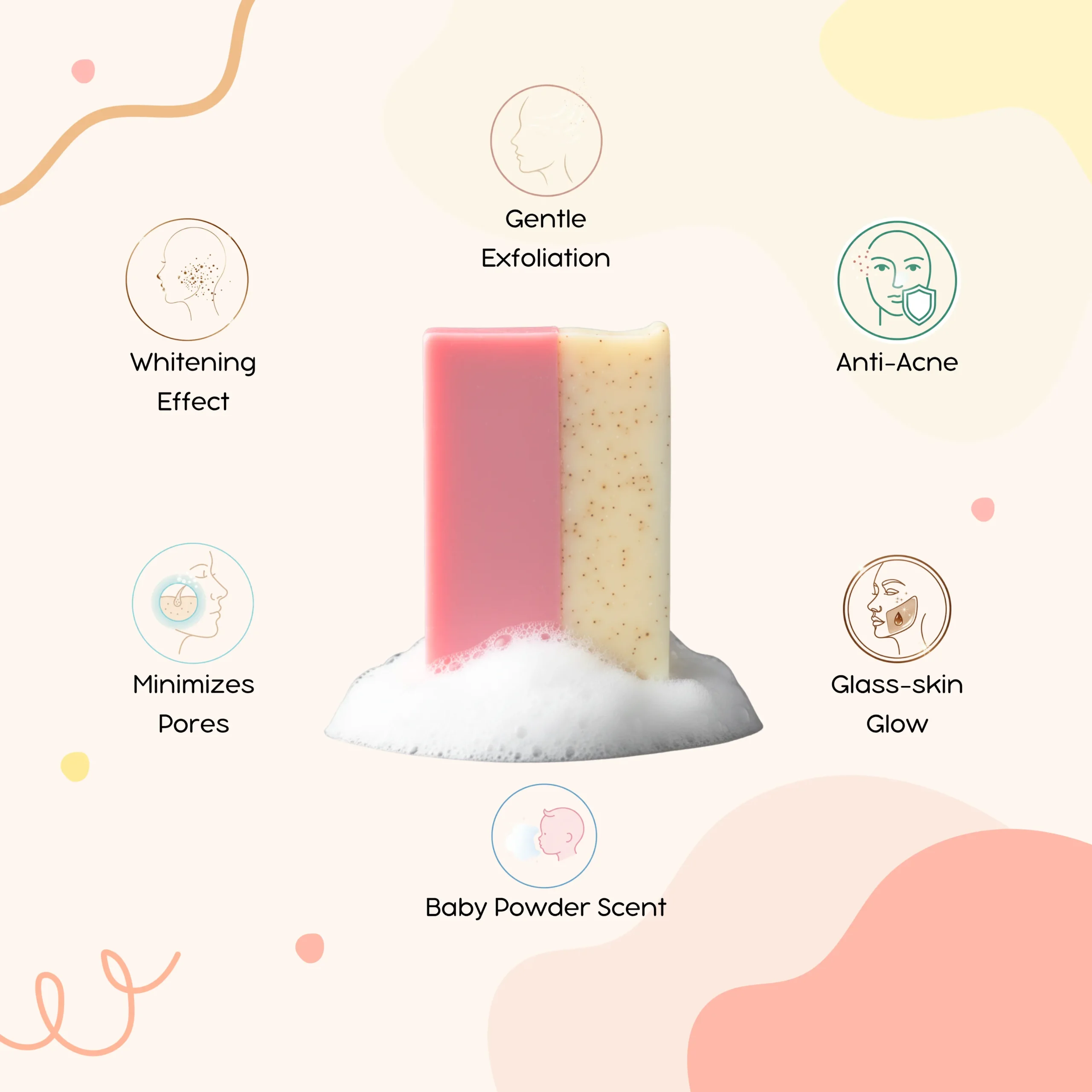 This formula gently renews the skin, fights acne, brightens, minimizes pores, and leaves a smooth, glass-skin glow with a fresh baby powder scent.